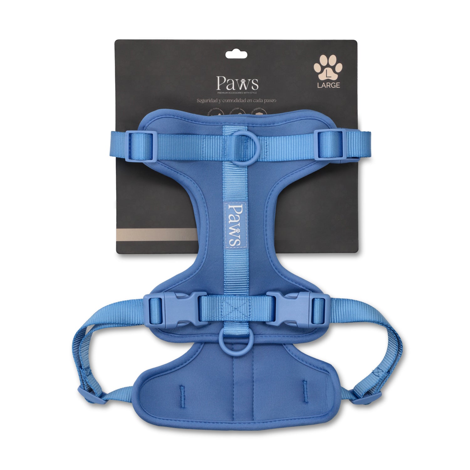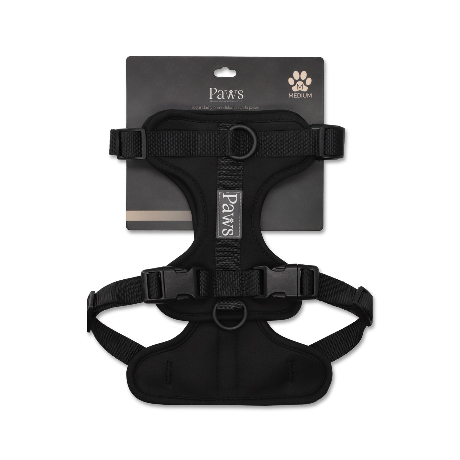 Este arnés funciona perfectamente junto a la Correa Paws para mayor control, el Collar Paws como complemento diario y el Dispensador de bolsitas para paseos más prácticos.